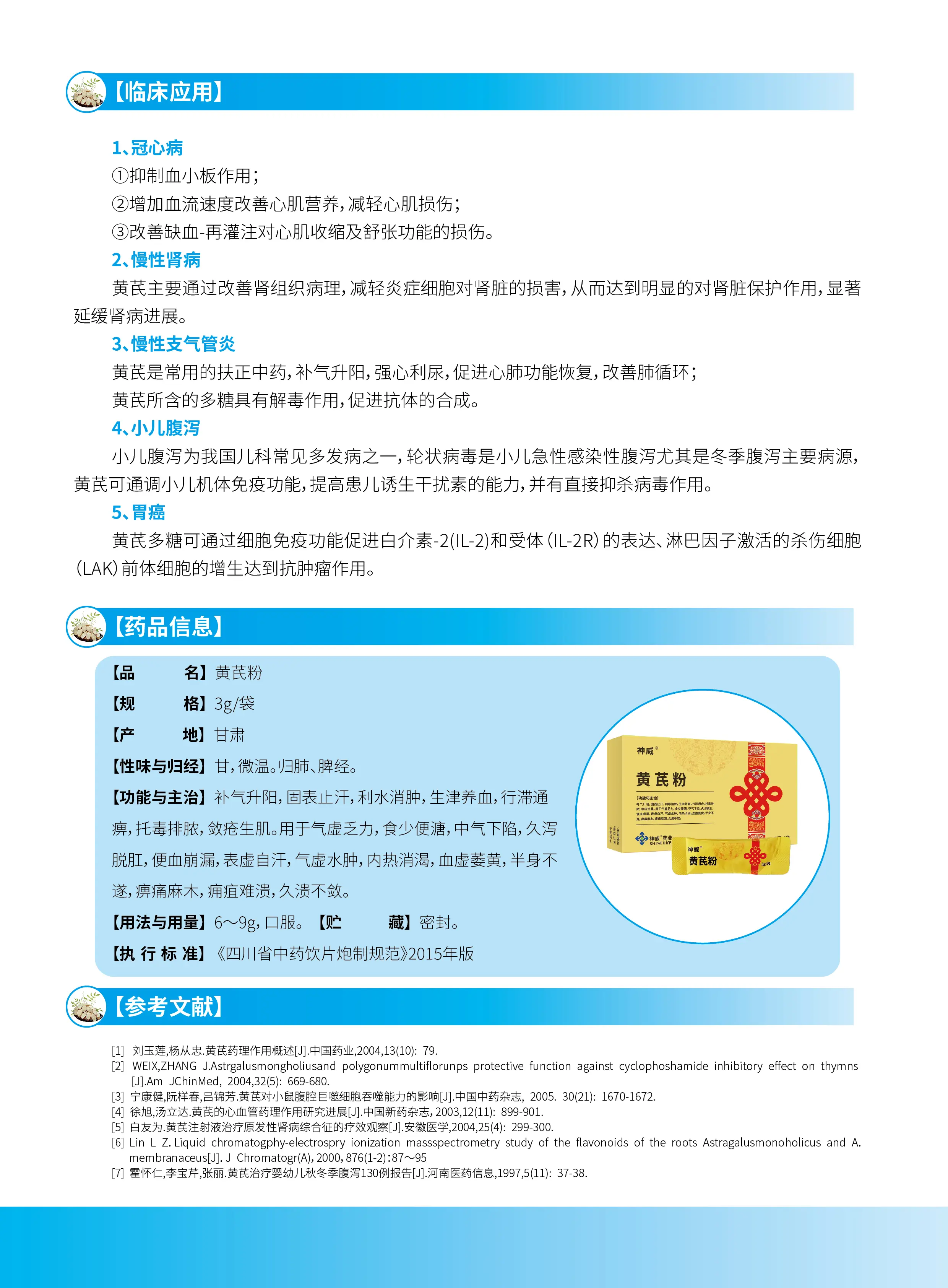 用于气虚乏力,食少便溏,中气下陷,久泻脱肛,便血崩漏,表虚自汗,气虚水肿,内热消渴,血虚萎黄,半身不遂,痹痛麻木,痈疽难溃,久溃不敛。